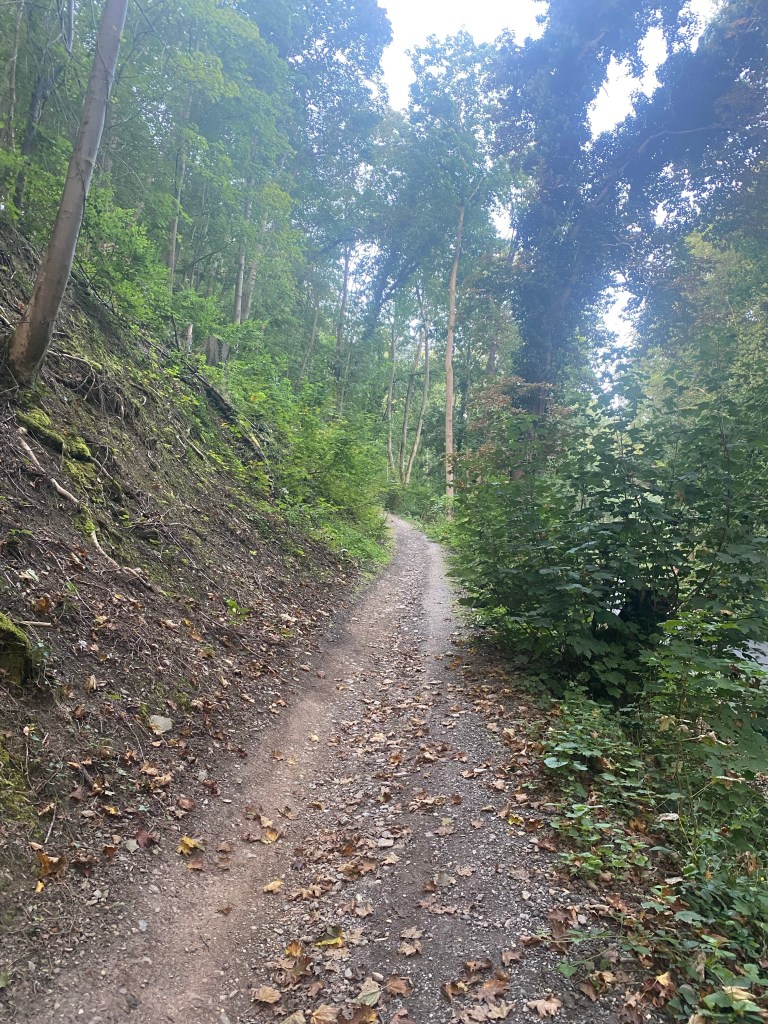 Kurz nach sieben Uhr, ab auf dem Weg, ab in den Wald und ab den Berg hoch.