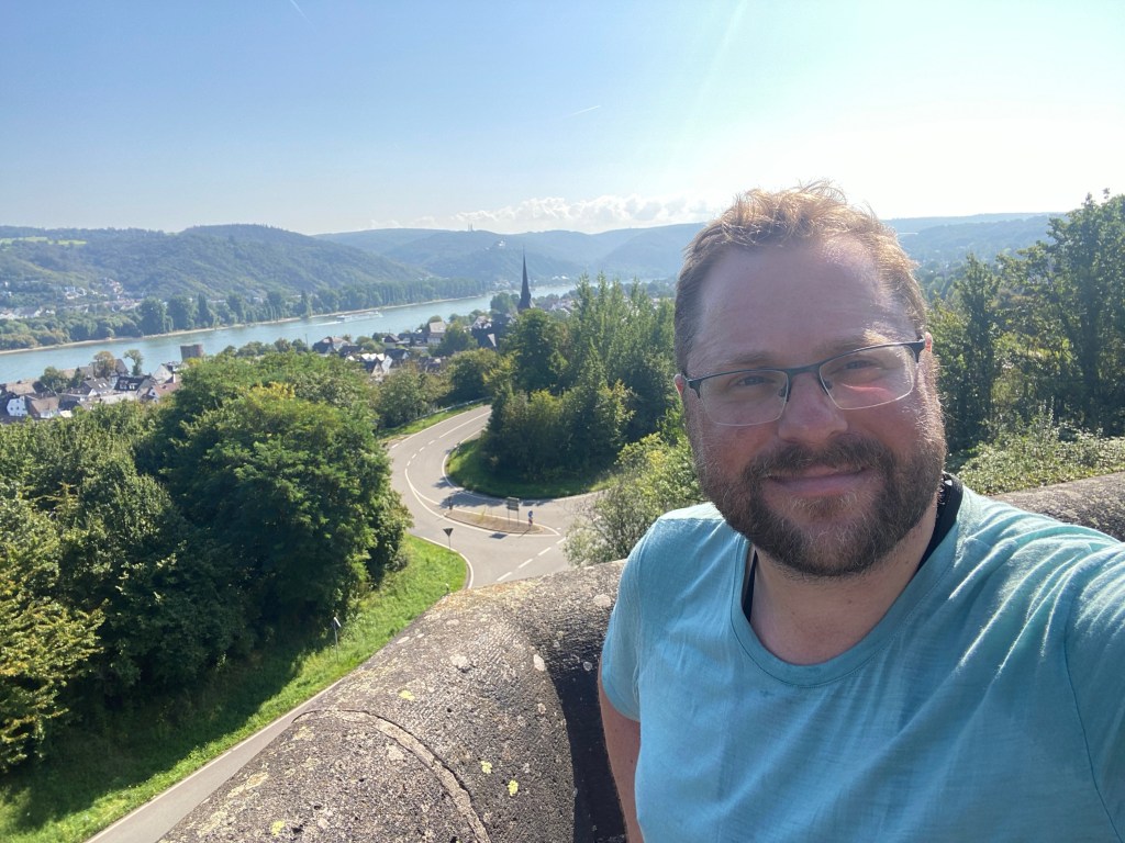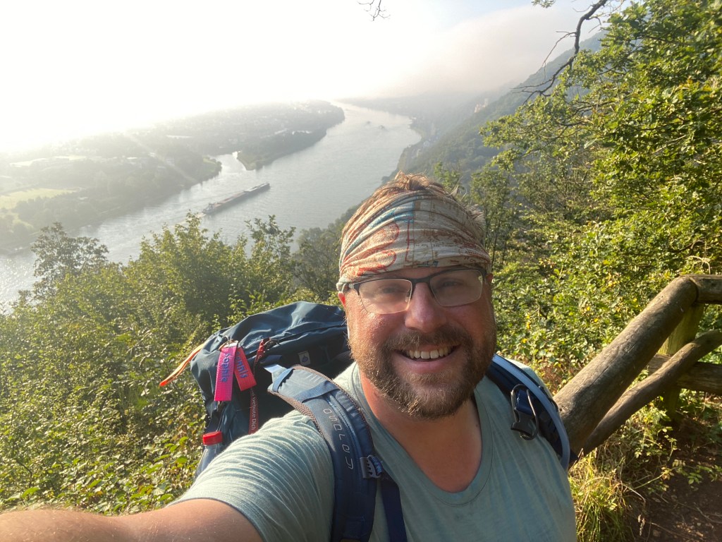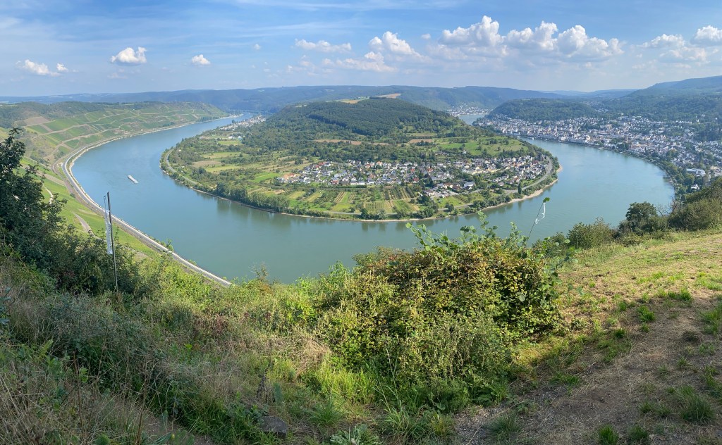 Recht entnervt komme ich an einem Aussichtspunkt an, wo man eine schöne Schleife des Rheins sehen kann und für einen Moment bin ich wieder gut gestimmt, und ignoriere die Seilbahn, die einem zurück ins Tal bringt. Böser Fehler.